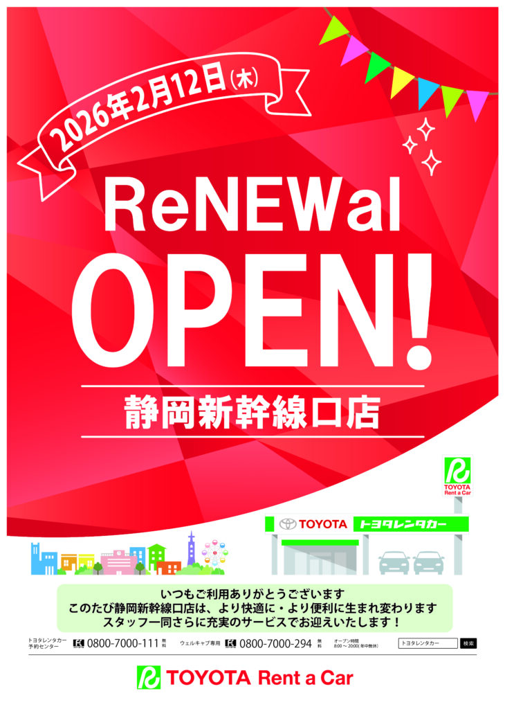 このたび、弊社 トヨタレンタリース静岡・静岡新幹線口店 は、